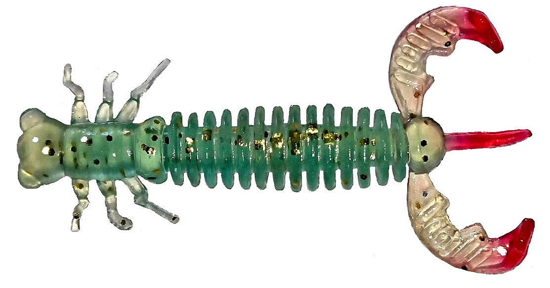Модификация популярных имитаций личинок стрекозы. Основное отличие - присутствие активных элементов в виде характерных клешен с небольшими пяточками на концах, что дает возможность использовать приманку при активной проводке. Поскольку LARVA GROW относится к категории плавающих приманок (Super floating), то характерный для этого типа проводки (небольшая <ступенька> с частыми остановками) значительно увеличивает шансы на поклевку.