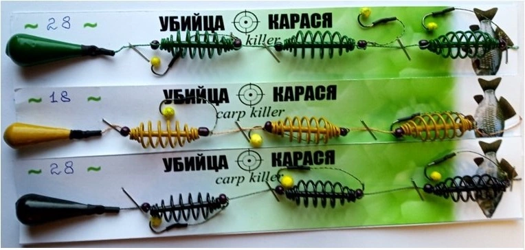 Кормушка оснащенная убийца карася CARP KILLER. Монтаж изготовлен из крашеных пружин 3 шт., крашеного груза в термоусадке, основной шнур и поводковый материал Power Pro, крючки Mustad в термоусадке 3 шт. + пенопласт. Доступно 3 цвета: Чёрный / Тёмно - Зелёный / Глиняно - Песочный