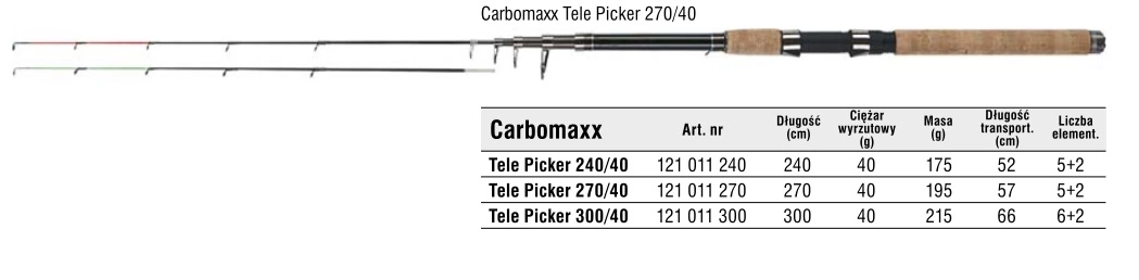 Уезжая в отпуск, настоящий рыболов должен взять с собой несколько удочек. Вот только как все поместить в багажнике, собираясь половить в разных местах и зная, что одним универсальным удилищем не обойтись? Удилище TELE PICKER - это как раз то, что Вам нужно! Благодаря конструкции и короткой транспортировочной длине (57 см), оно станет спутником всех поездок за город.